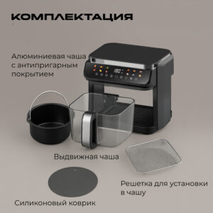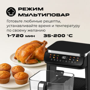 Аэрогриль имеет стильный и современный дизайн, который легко вписывается в любую кухню. Корпус выполнен из качественного пластика, а стеклянная чаша позволяет наблюдать за процессом приготовления. Удобная ручка не нагревается и обеспечивает комфортное использование. Аэрогрильпредлагает множество функций, которые делают его универсальным помощником на кухне. Управление аэрогрилем интуитивно понятное. На панели управления расположены кнопки для выбора температуры и времени, а также предустановленные программы для различных блюд. Это позволяет легко готовить даже тем, кто не имеет большого опыта на кухне. Качество приготовления пищи в Red ColorCook G550 на высоком уровне. Продукты получаются равномерно пропеченными и хрустящими снаружи, сохраняя при этом сочность внутри. Особенно радует возможность готовить без масла или с минимальным его количеством, что делает блюда более полезными. Чаша аэрогриля достаточно вместительная, что позволяет готовить порции для всей семьи. Легкость в очистке также является большим плюсом: съемные элементы можно мыть в посудомоечной машине, а поверхность легко протирается. В целом, аэрогриль Red ColorCook G550 – это отличный выбор для тех, кто хочет готовить быстро и вкусно, уделяя внимание здоровому питанию. Он сочетает в себе функциональность, простоту использования и стильный дизайн. Рекомендуется всем, кто ценит удобство и качество в приготовлении пищи.