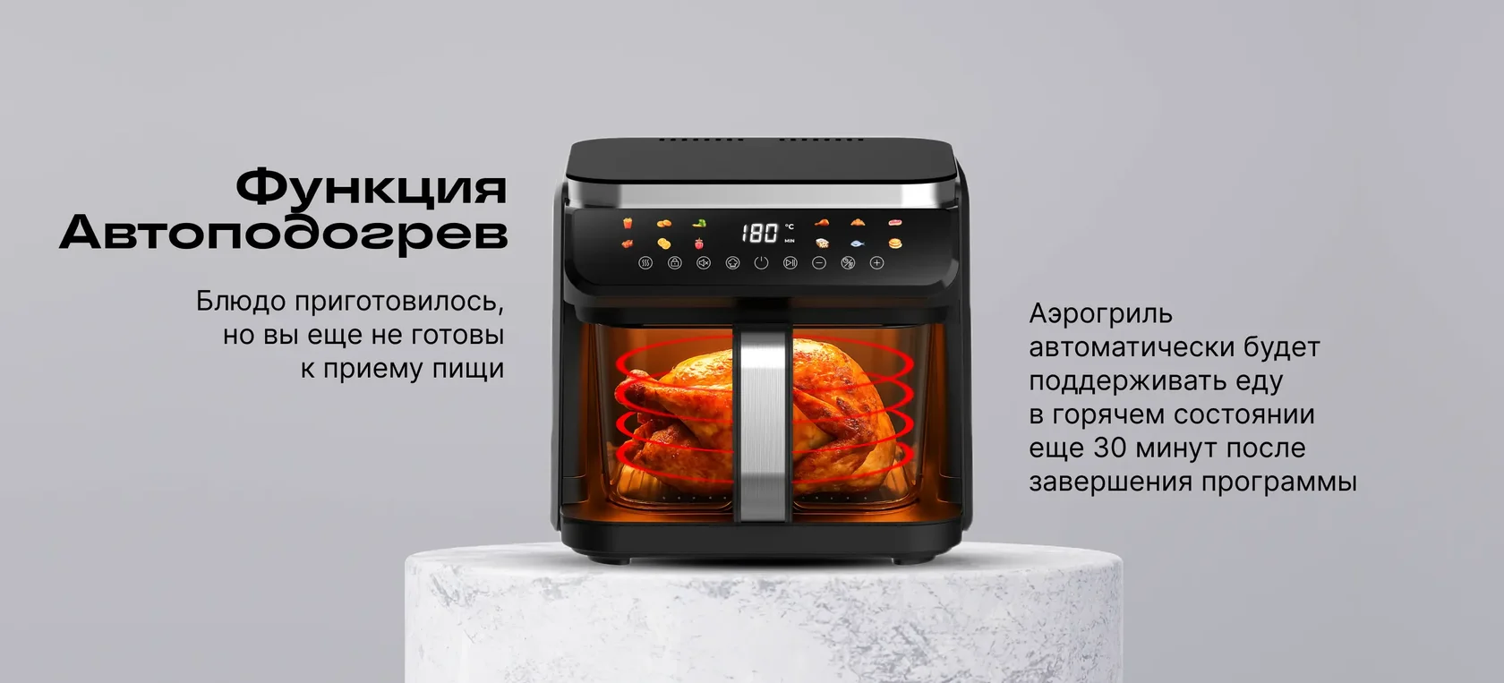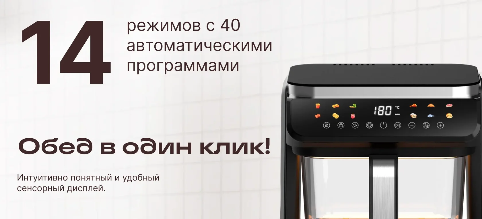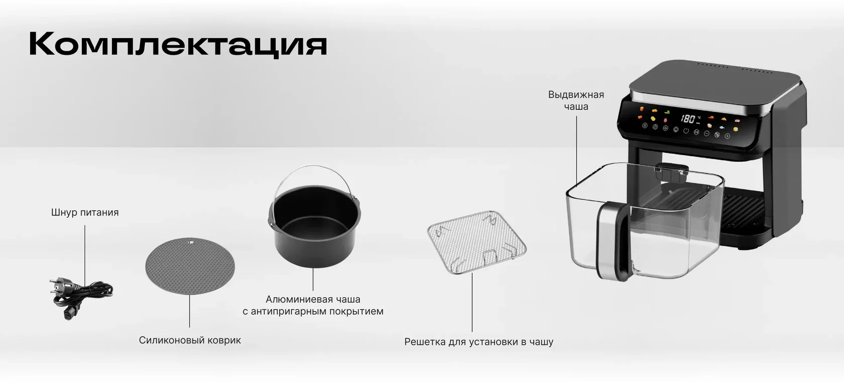 Аэрогриль имеет стильный и современный дизайн, который легко вписывается в любую кухню. Корпус выполнен из качественного пластика, а стеклянная чаша позволяет наблюдать за процессом приготовления. Удобная ручка не нагревается и обеспечивает комфортное использование. Аэрогрильпредлагает множество функций, которые делают его универсальным помощником на кухне. Управление аэрогрилем интуитивно понятное. На панели управления расположены кнопки для выбора температуры и времени, а также предустановленные программы для различных блюд. Это позволяет легко готовить даже тем, кто не имеет большого опыта на кухне. Качество приготовления пищи в Red ColorCook G550 на высоком уровне. Продукты получаются равномерно пропеченными и хрустящими снаружи, сохраняя при этом сочность внутри. Особенно радует возможность готовить без масла или с минимальным его количеством, что делает блюда более полезными. Чаша аэрогриля достаточно вместительная, что позволяет готовить порции для всей семьи. Легкость в очистке также является большим плюсом: съемные элементы можно мыть в посудомоечной машине, а поверхность легко протирается. В целом, аэрогриль Red ColorCook G550 – это отличный выбор для тех, кто хочет готовить быстро и вкусно, уделяя внимание здоровому питанию. Он сочетает в себе функциональность, простоту использования и стильный дизайн. Рекомендуется всем, кто ценит удобство и качество в приготовлении пищи.
