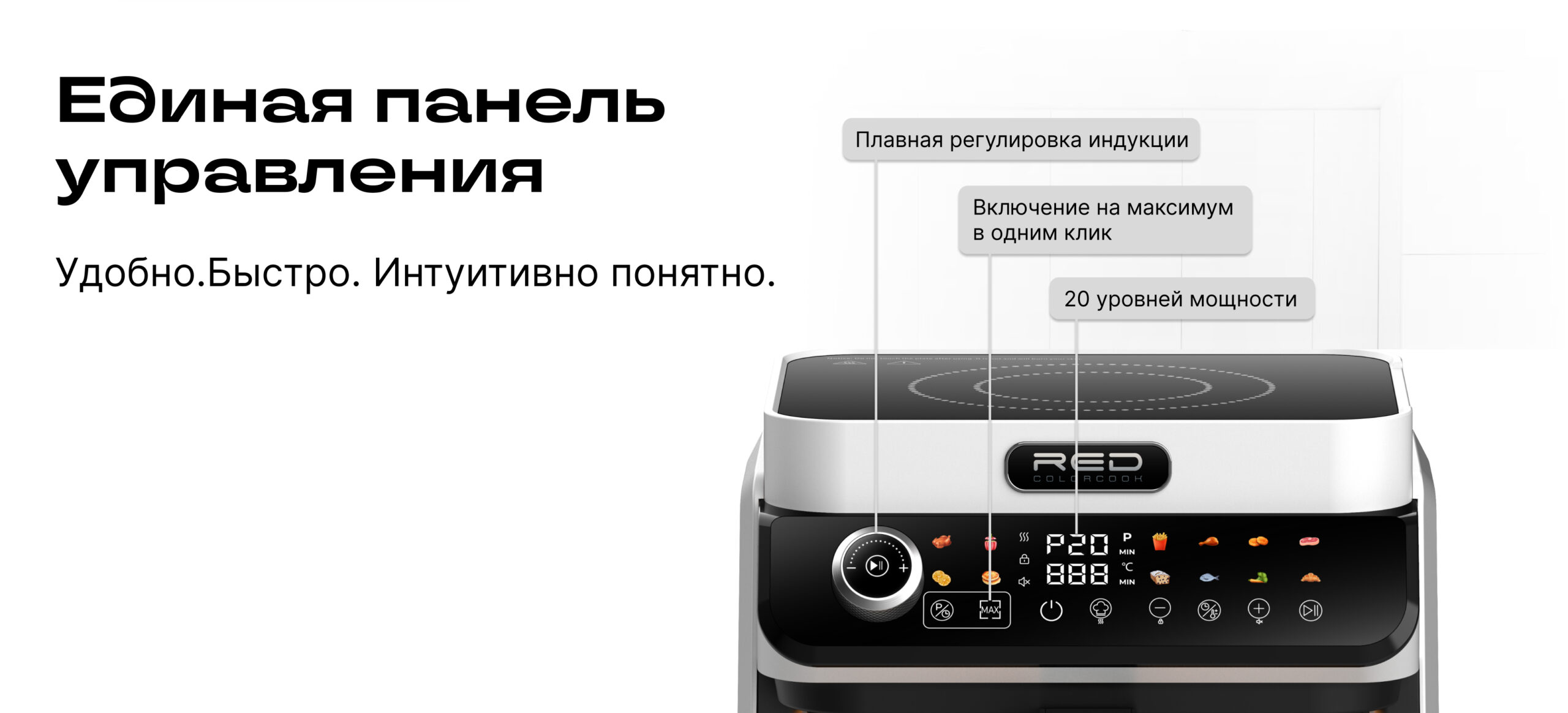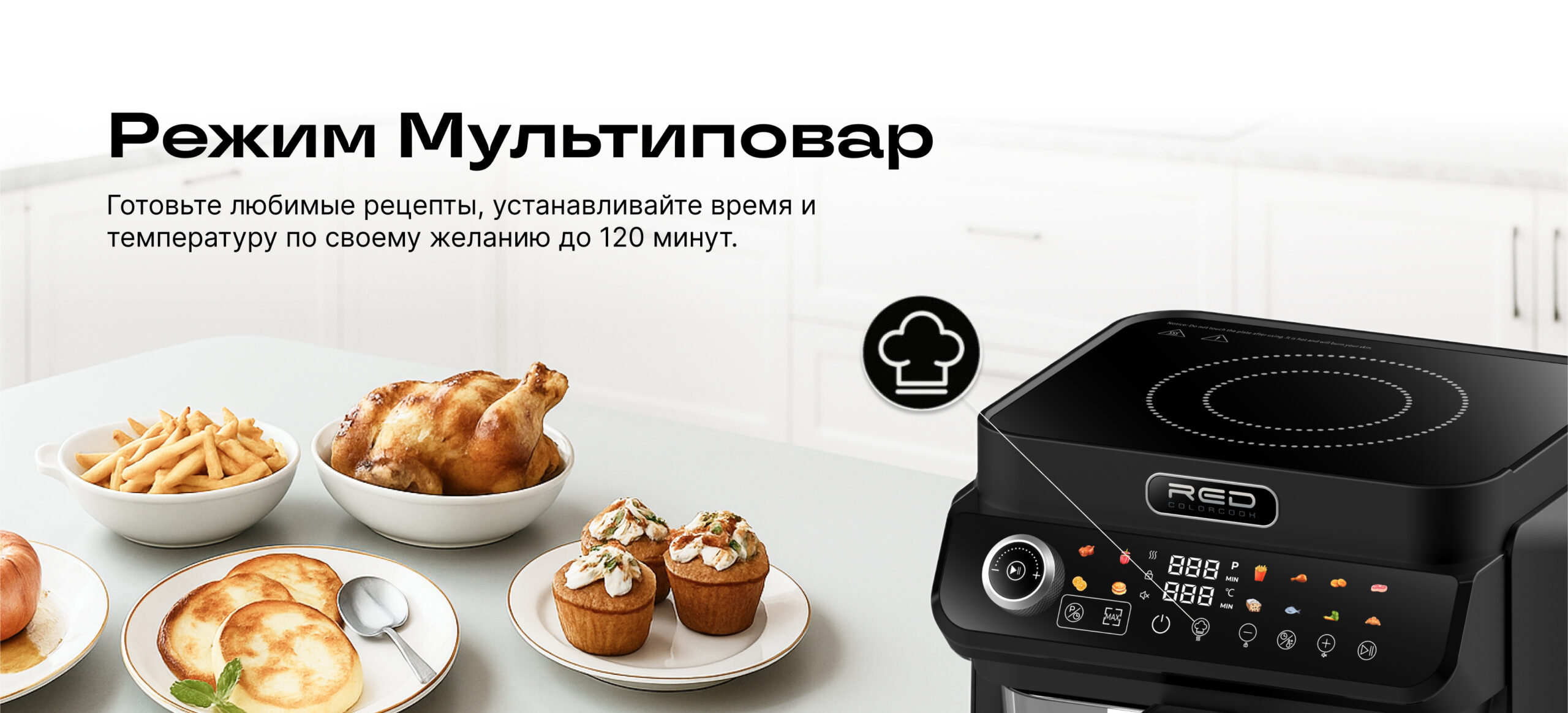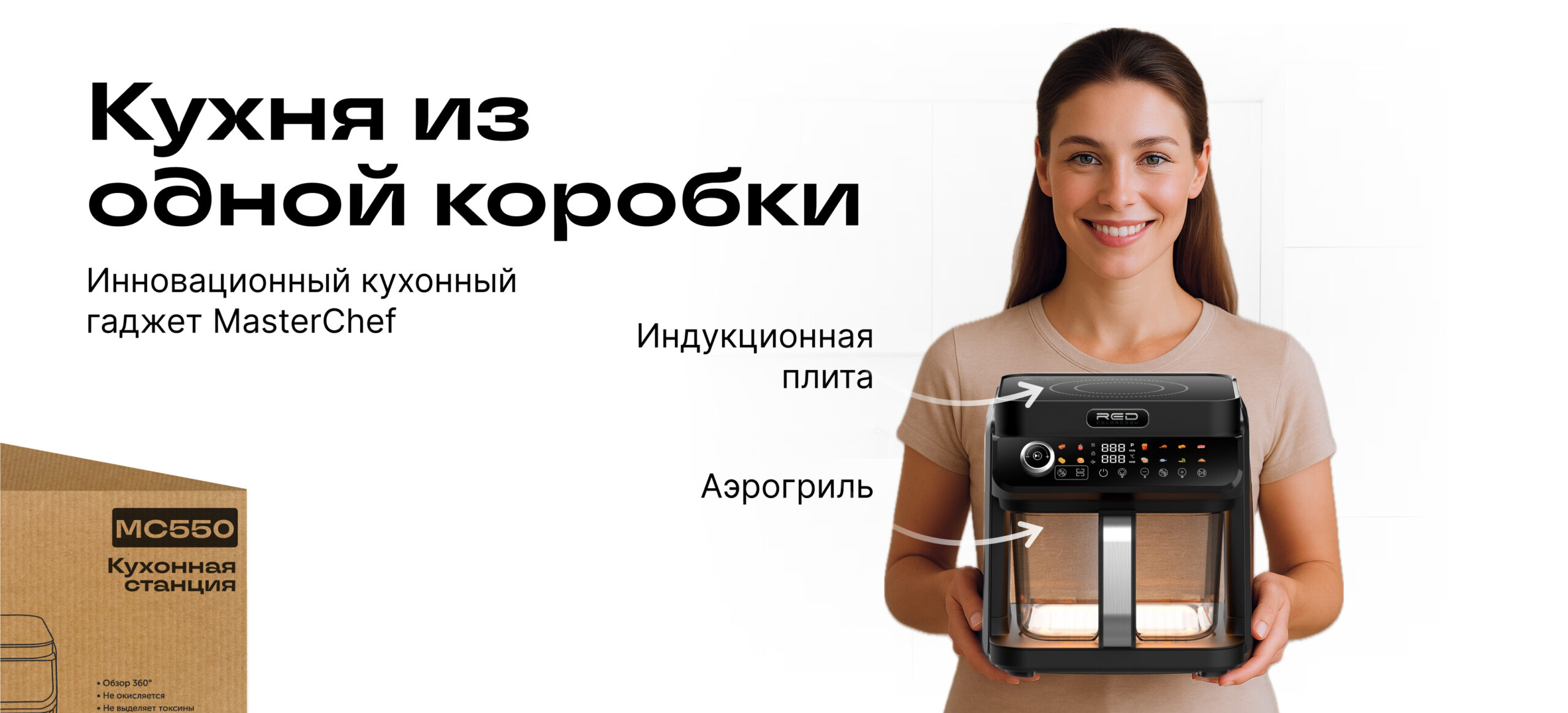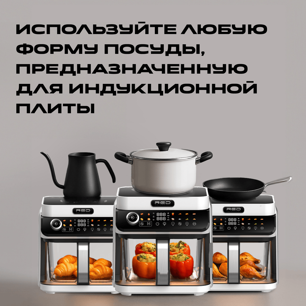 ECO кухонная станция RED ColorCook MasterChef MC550 (белый корпус) — универсальная кухонная техника нового поколения, сочетающая индукционную плиту и аэрогриль в одном компактном устройстве.