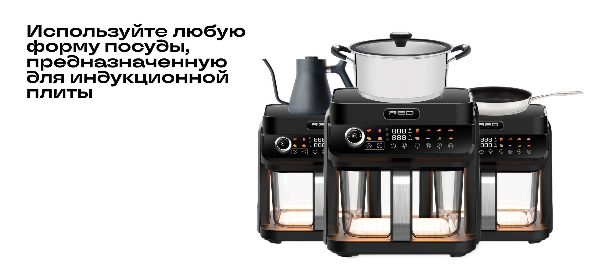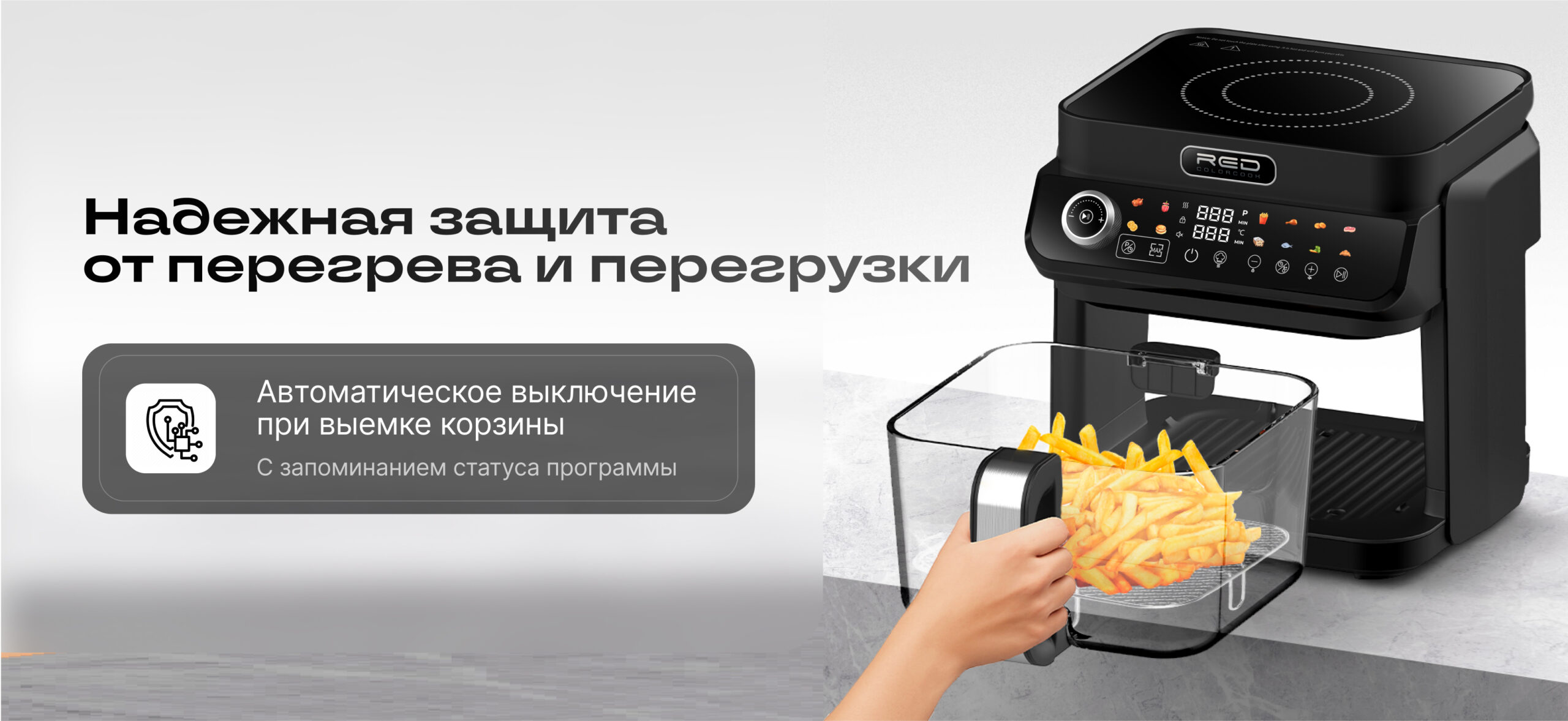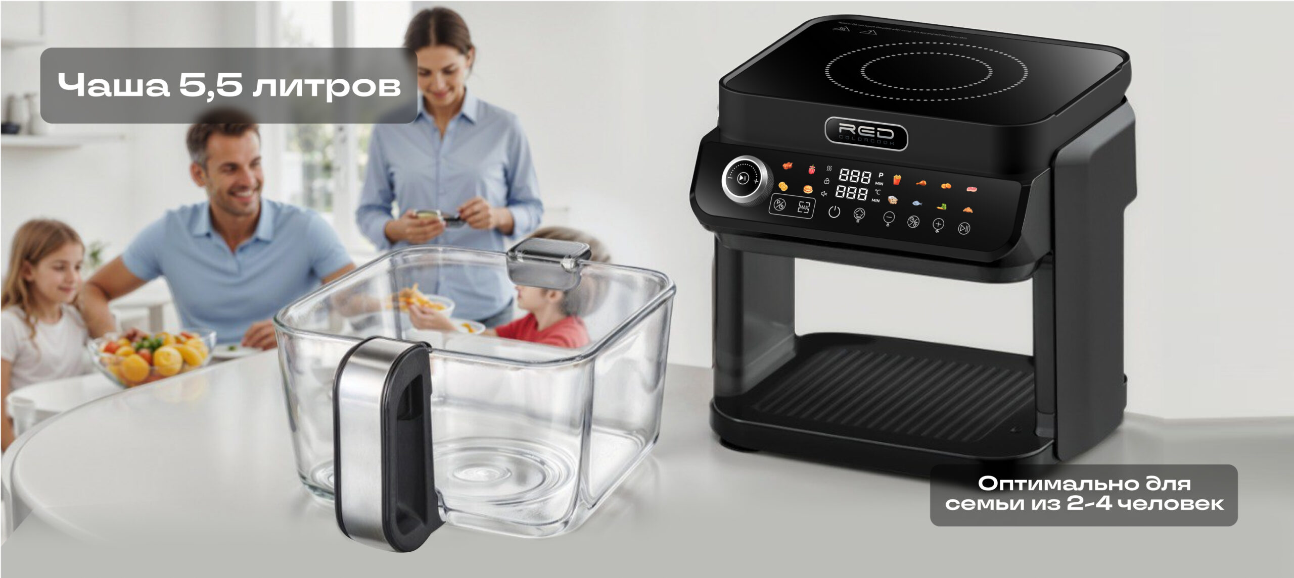 ECO кухонная станция RED ColorCook MasterChef MC550 (белый корпус) — универсальная кухонная техника нового поколения, сочетающая индукционную плиту и аэрогриль в одном компактном устройстве.