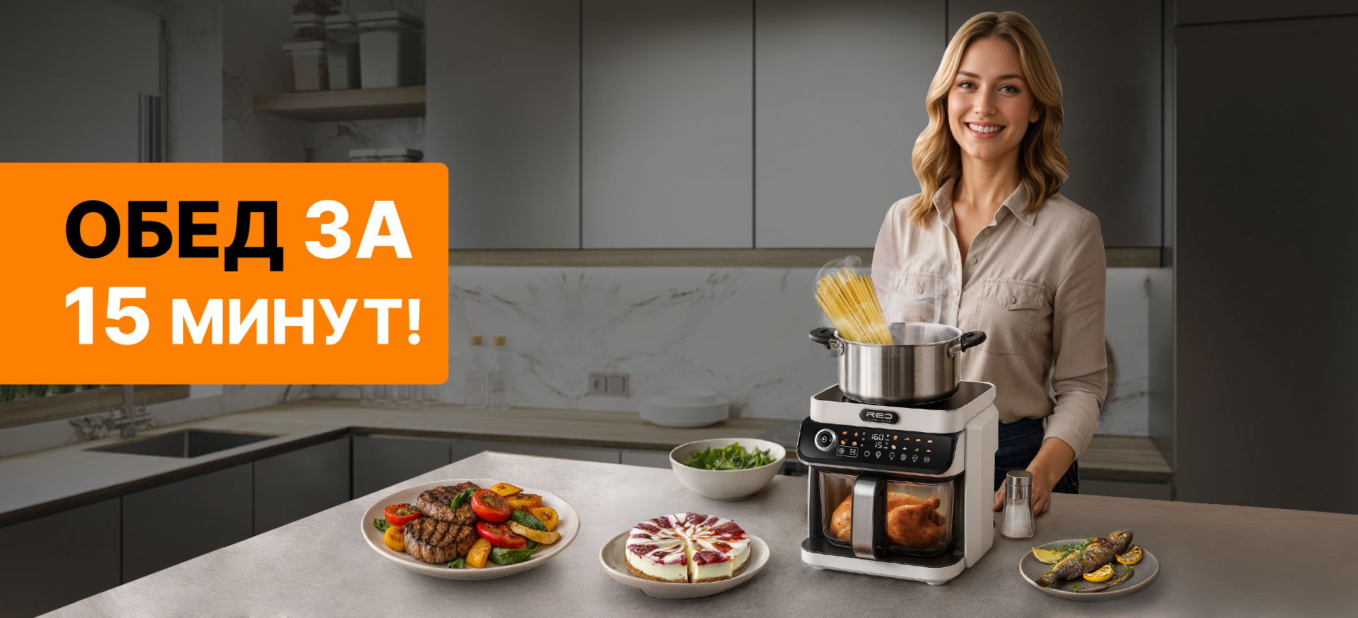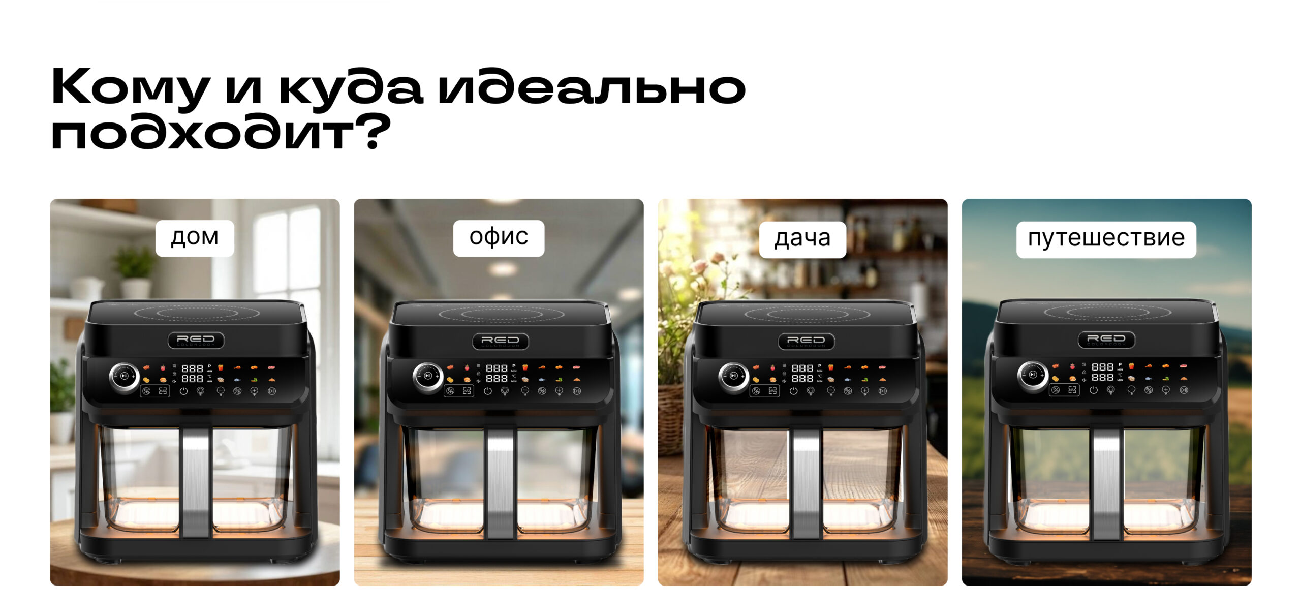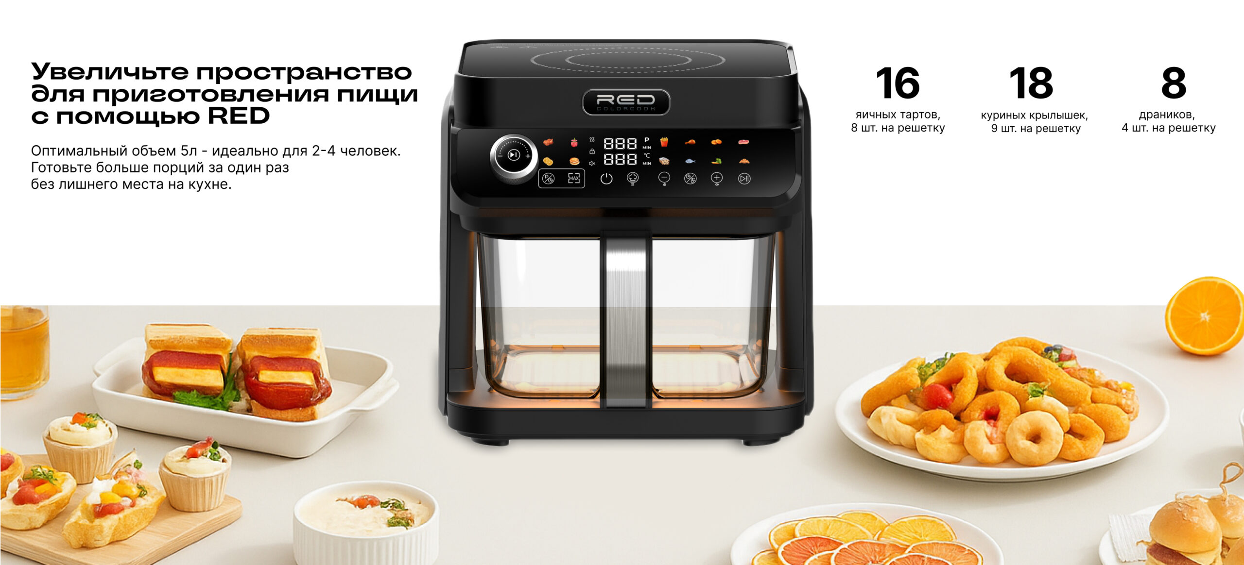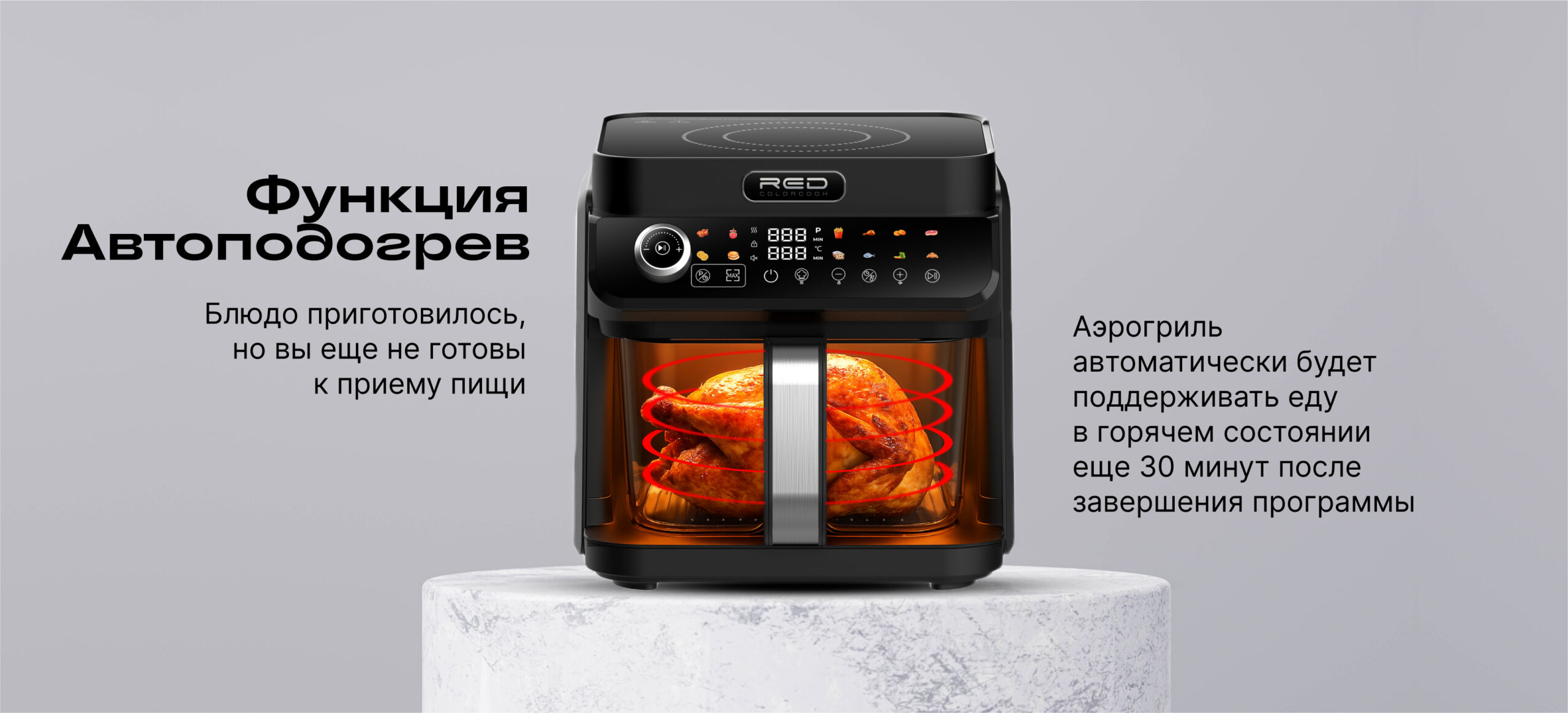 ECO кухонная станция RED ColorCook MasterChef MC550 (белый корпус) — универсальная кухонная техника нового поколения, сочетающая индукционную плиту и аэрогриль в одном компактном устройстве.